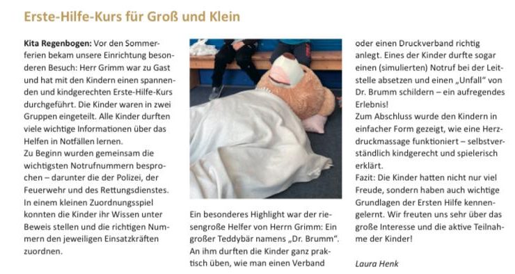 Ein spannender und toller Vormittag geht zu Ende. Spielerisch erlernten 25 Kinder die Grundlagen der ersten Hilfe, ganz nach dem Motto "helfen ist kinderleicht"